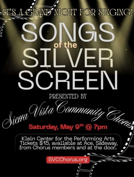 Its a grand night for singing! Come join the Sierra Vista Community Chorus for our annual spring concert for a great night out. Featured music will be songs of the silver screen with new and old songs alike. We promise there will be tunes for every taste.